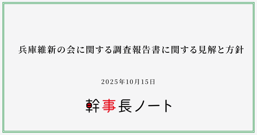 兵庫維新の会に関する調査報告書に関する見解と方針
